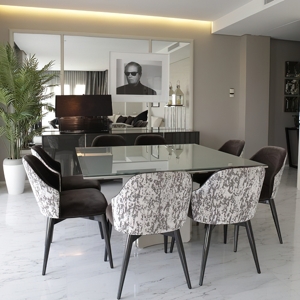 Elaborado con meticulosa atención al detalle, el diseño de esta residencia familiar privada combina a la perfección la forma con la función, demostrando que la practicidad y la belleza pueden coexistir. Capas de telas estampadas y texturas táctiles interactúan en todas partes, reflejando la esencia dinámica de la familia que llama hogar a esta propiedad. En el corazón de la residencia se encuentra la cocina, un paraíso culinario donde la clienta, una madre devota, se deleita preparando comidas para sus seres queridos. Totalmente renovada para irradiar un aire de lujo refinado, la cocina cuenta con encimeras de piedra, carpintería intrincada y un diseño abierto que fomenta la conectividad y los momentos familiares compartidos. Un encantador rincón para desayunar, ubicado en medio de un entorno sereno, extiende una invitación a reuniones íntimas y conversaciones preciadas, añadiendo el toque final a la narrativa de este extraordinario santuario familiar.